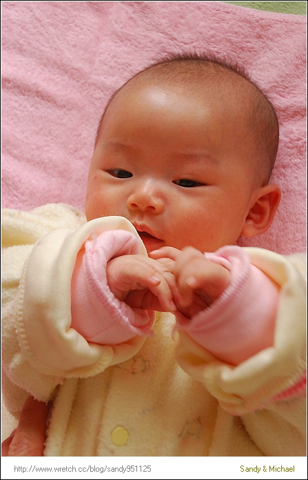 當然,現在(5個月)不止是玩自己的手手,而是把手指放在嘴裡了。